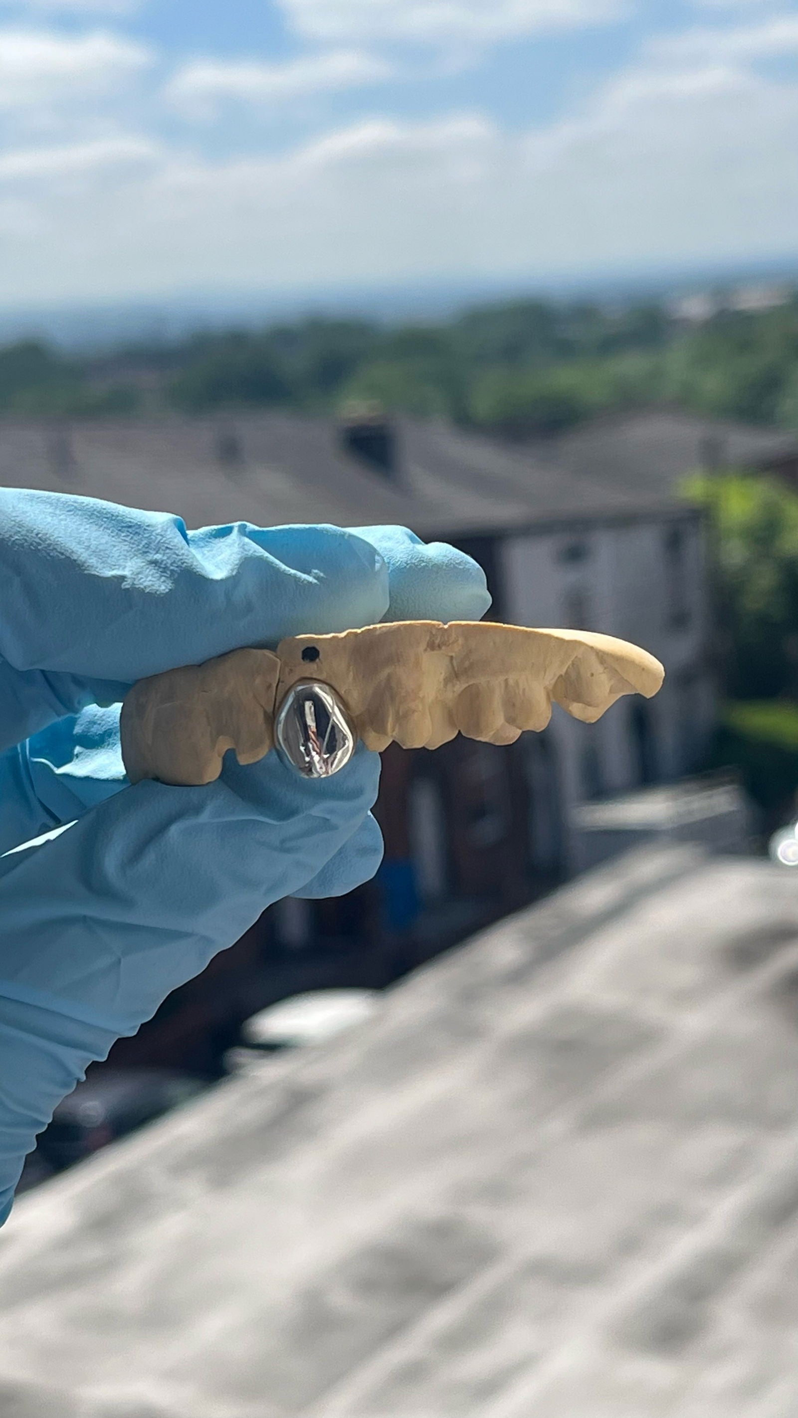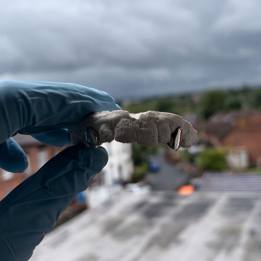 Our silver caps are made out of .925 Sterling Silver. The caps are removable and fit your teeth perfectly.